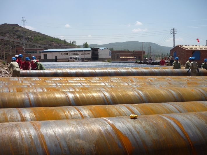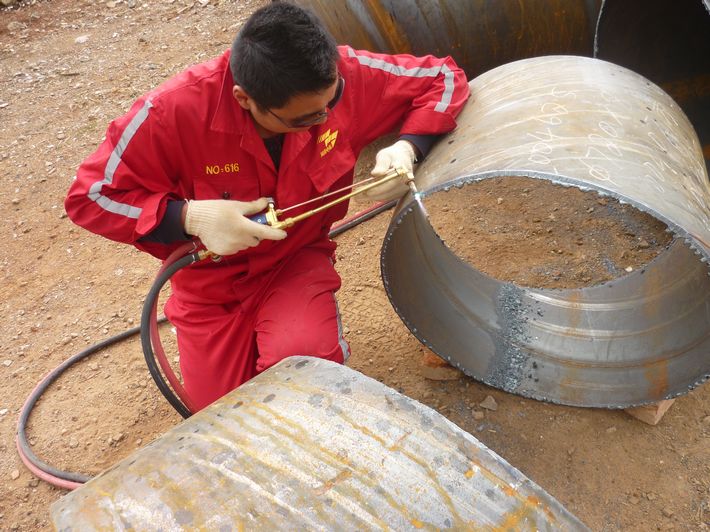在建設(shè)單位的積極協(xié)調(diào)下,在項(xiàng)目部全體員工的共同努力下,克服天氣多雨,作業(yè)場(chǎng)地狹窄,管材要多次倒運(yùn)等施工困難,目前已完成φ720鋼管防腐2km,預(yù)制彎頭24個(gè),布管900米,工程施工進(jìn)展順利。