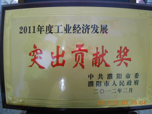 熱烈祝賀公司獲得濮陽市“突出貢獻(xiàn)企業(yè)”獎(jiǎng) (圖)