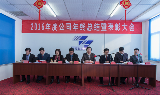 大會由公司總經理助理郭循昌主持,在一首激情高昂的《中拓之歌》中拉開了大會帷幕。首先由副總經理陳建霞宣讀《2016年度先進集體、先進個人表彰決定》,公司的發(fā)展離不開全體員工的努力和付出;其次先進代表進行發(fā)言;緊接著由副總經理葛延超宣讀《公司二〇一七年度總體經營目標通知》,公司董事長徐效華同志與各經營單位簽訂《2017年度經營目標責任書》;最后由公司董事長徐效華同志發(fā)表重要講話,徐總回顧了公司2016年所取得的重大成績,對公司各部門的努力與付出給予了充分的肯定與鼓勵,同時提出了公司2017年新的戰(zhàn)略規(guī)劃,希望公司全體員工再接再勵,共創(chuàng)輝煌。大會在《團結就是力量》的歌聲中圓滿結束。
