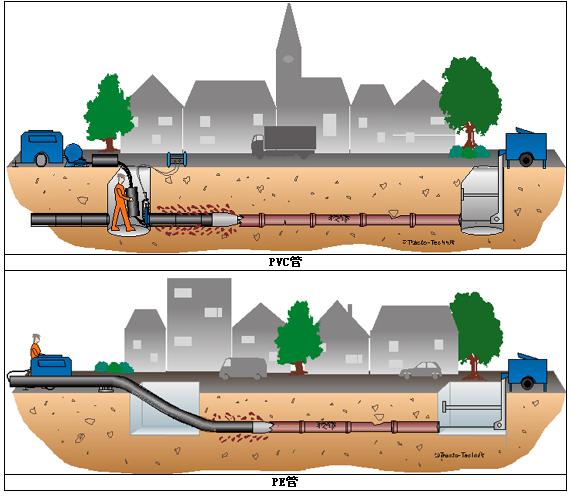 Compared with the traditional non-excavation repairing, broken pipe method has the advantages of high process precision, expandable pipe, high work efficiency and low cost. At the same time can be replaced at the same level or a larger diameter of PE pipe, PE pipe wall is smooth, flow significantly increased compared to the original pipeline.